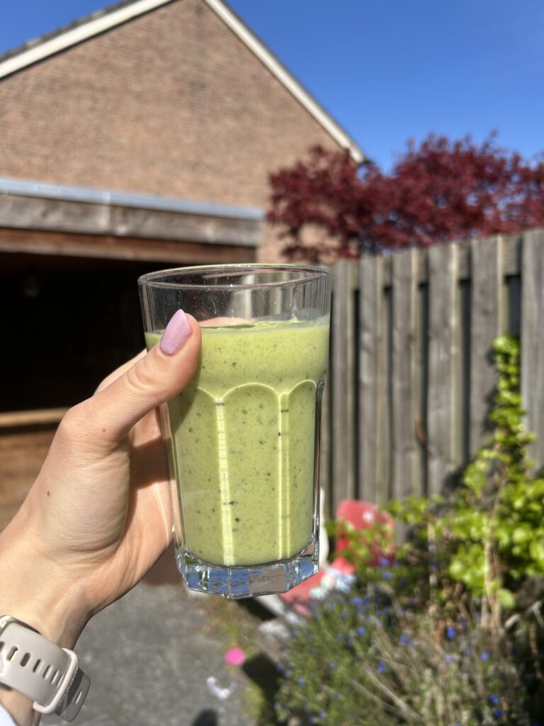 - Amandelmelk op gevoel (hoe meer, hoe dunner de smoothie)